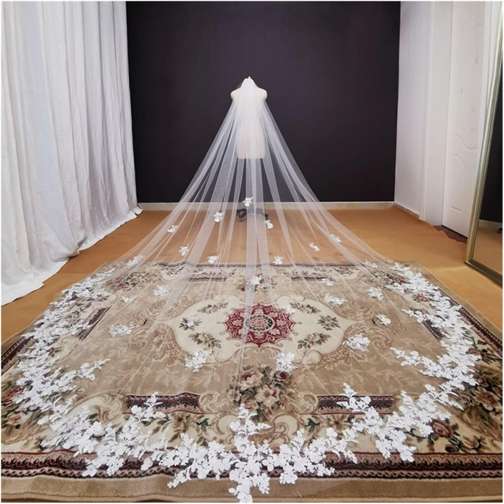 Wedding Headwear Veil Long Ivory Ribbon Embroidery